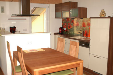 Drei geschmackvoll und gemütlich eingerichtete, großzügige Nichtraucher-Ferienappartments in unterschiedlichen Größen stehen zu Ihrer Verfügung. Alle Appartments verfügen über einen offenen Küchen-, Wohn- und Essbereich, ein modernes Duschbad, und natürlich Internet, Stereoanlage, TV. Die Waschmaschine im Kellergeschoß steht zu Ihrer Verfügung, Bettwäsche stellen wir Ihnen gerne. Nach Absprache sind auch Ihre Haustiere willkommen.